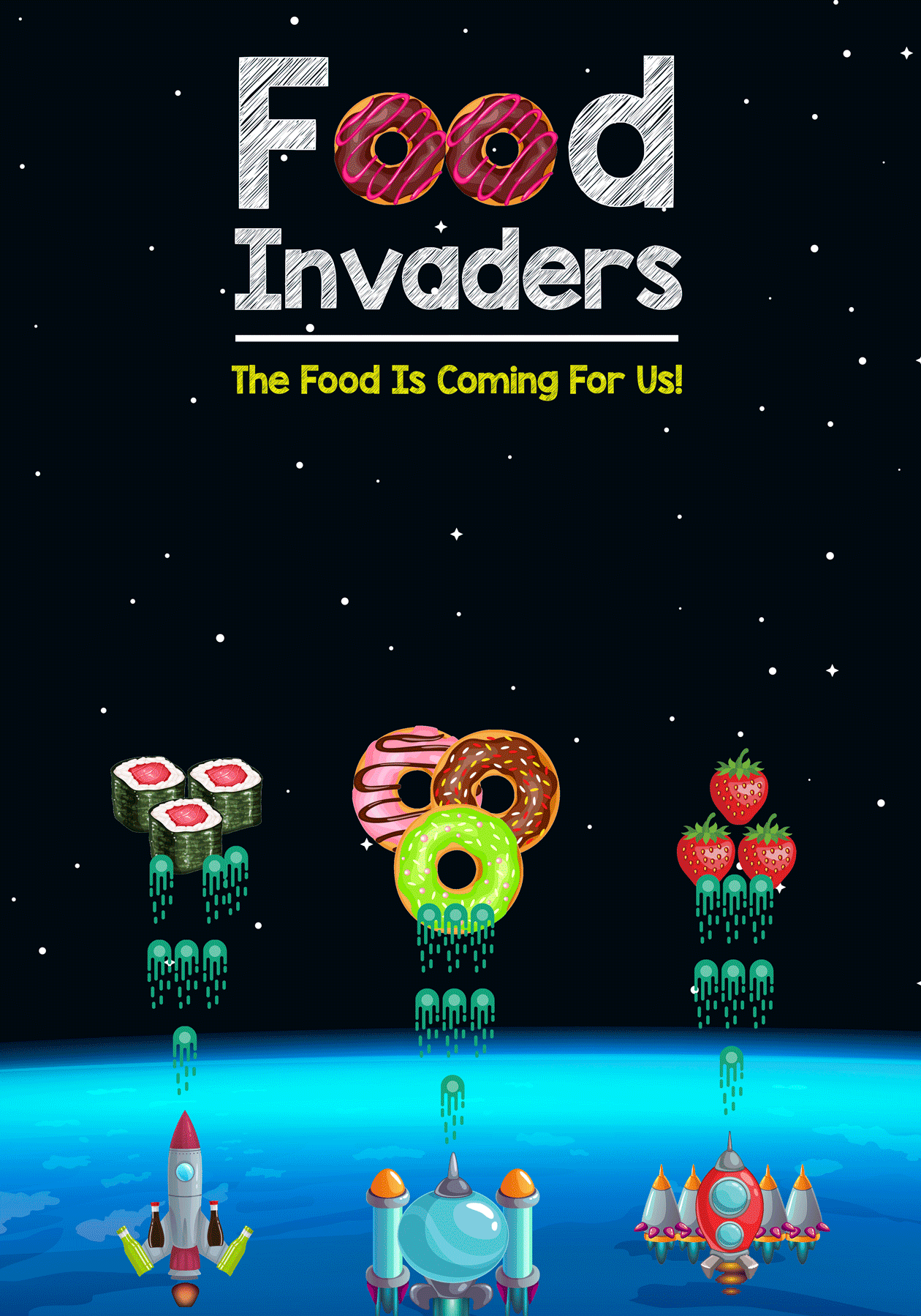 Food Invaders is a casually-retro space shooting game where you shoot “Food” instead of spaceships.